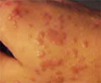 表皮有角化不全和角化过度,颗粒层可增厚,乳头瘤样增生,真皮乳头增宽,呈外向型生长。